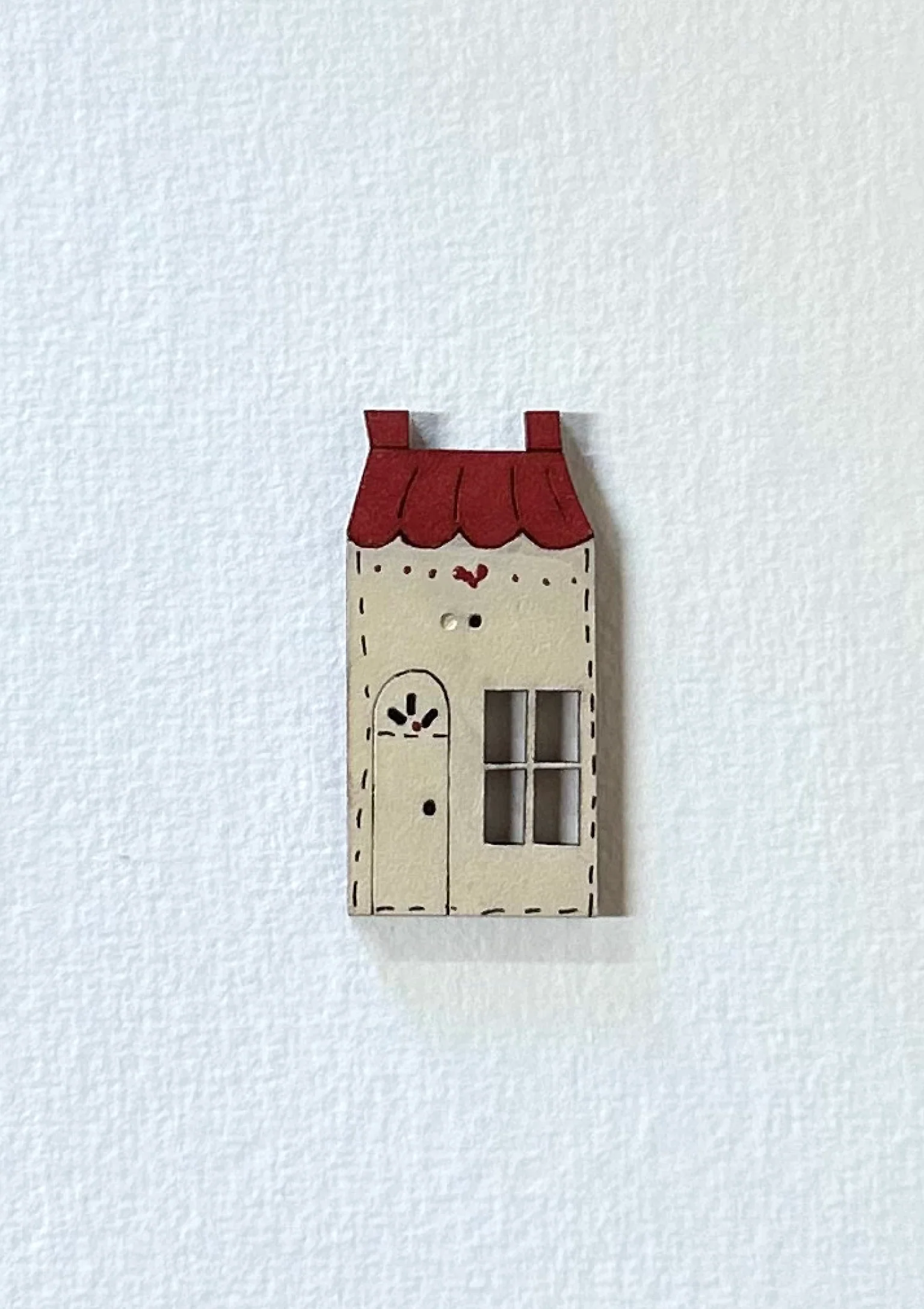 A quirky hand painted wooden button designed and painted by Barb Smith of Theodora Cleave